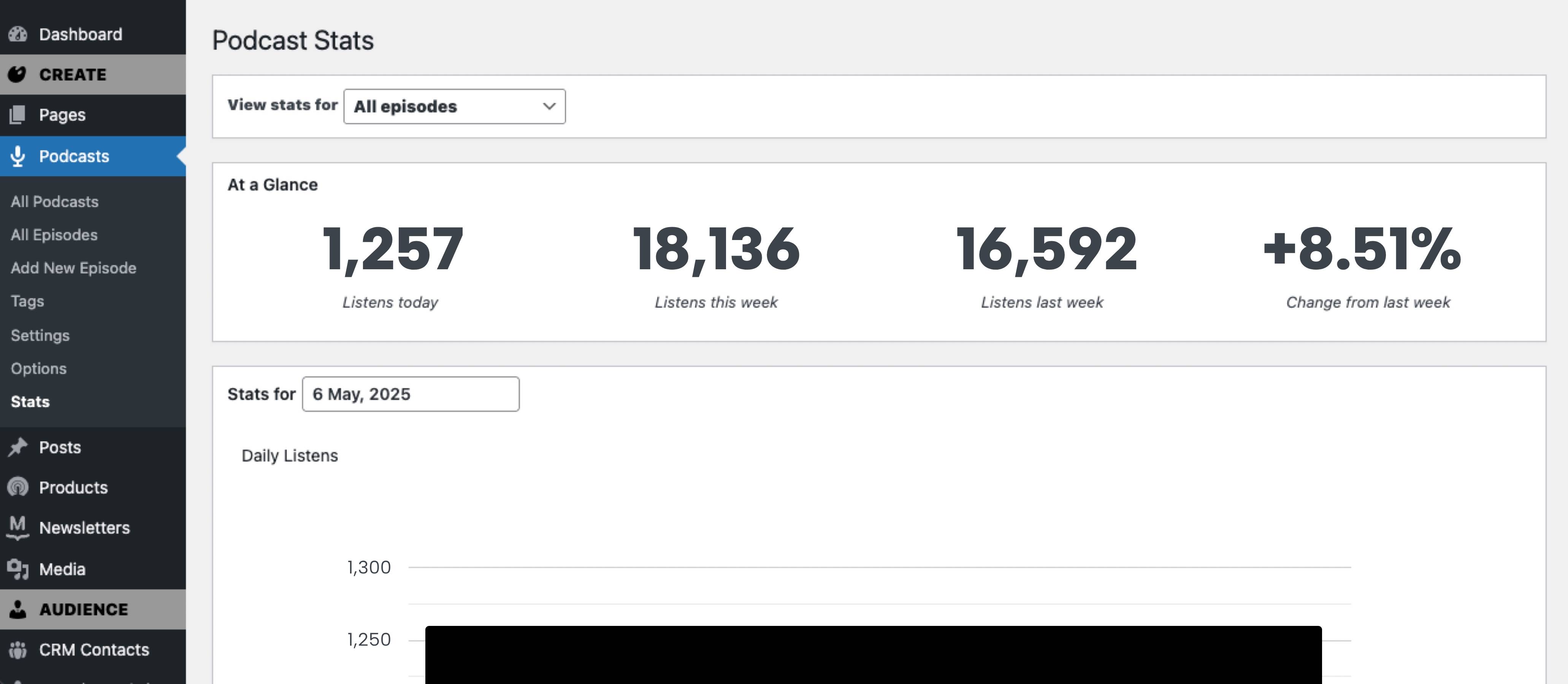 Built-in and optimized podcasting tools along with statistics information allow your organization to upload your podcast episodes to your own website (benefiting your web authority, back links, web traffic, and general search engine optimization efforts).